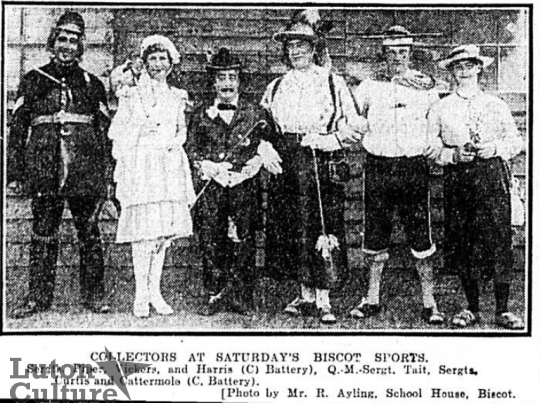 Truly it was a gala day for Biscot on Saturday, a red letter day in the career of the R.F.A. men, for it was the occasion of their regimental sports. The Wardown cricket ground presented an animated and picturesque scene with its crowds of spectators. The brilliant sunshine aiding the effect of the varied colours of the summer dresses worn by the ladies and the khaki uniform, of the men.