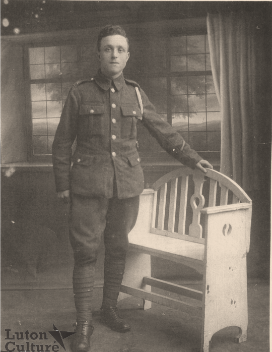 He was assigned to the 2nd/5th Staffordshire Royal Field Artillery Battery, 2/3rd North Midland Artillery Brigade, he undertook his training at Biscot Huts, an Army Camp near to Biscot Mill, Luton.