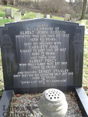 Ernest is commemorated on the Luton Roll of Honour/War Memorial and in the Book of Life compiled at Luton Parish Church.