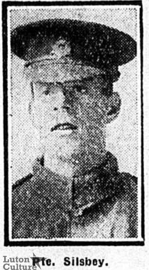 Bertram Silsby (or Silsbey, the surname changes) was the youngest son of George and Elizabeth Silsby, and brother to Emily, Florrie, Ellen and Frederick Silsby, from Hitchin. His father was a boot maker, but tragically died when Bertram was young, meaning the family had to move to 50 Buxton Road Luton.