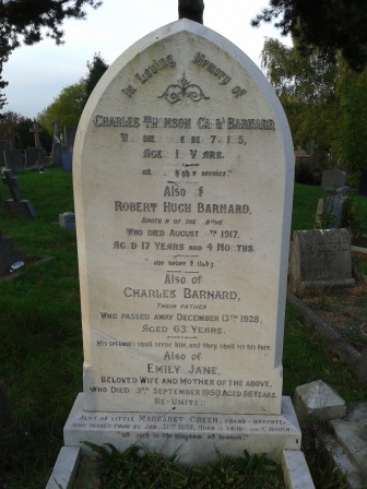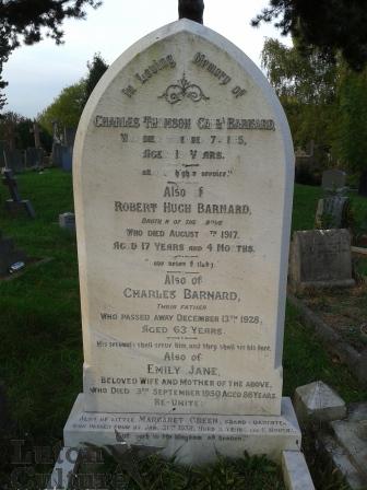 A funeral service for Pte Barnard was held at the General Cemetery, Luton, on Friday, November 12th, 1915, conducted by the Rev G. Roberts Hern, of Park Street Baptist Church. Burial there followed.