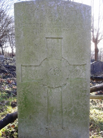 On 15th December 1913 Harry was re-enlisted into the 3rd Battalion Bedfordshire Regiment Special Reserve. When war broke out he formed part of the 4th (Special Reserve) Battalion, which was based at Bedford then moved to Felixstowe to provide home defence around Harwich as well as drafts for the front line battalions. In October 1914 Harry was wounded in the head whilst serving at the front & was sent home, where on the 10th January 1915 he died in the Military Hospital in Edinburgh.