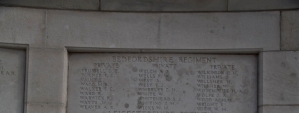 Images of the names of the fallen from the Bedfordshire Regiment remembered on the Tyne Cot Memorial, Zonnebeke, Belgium.